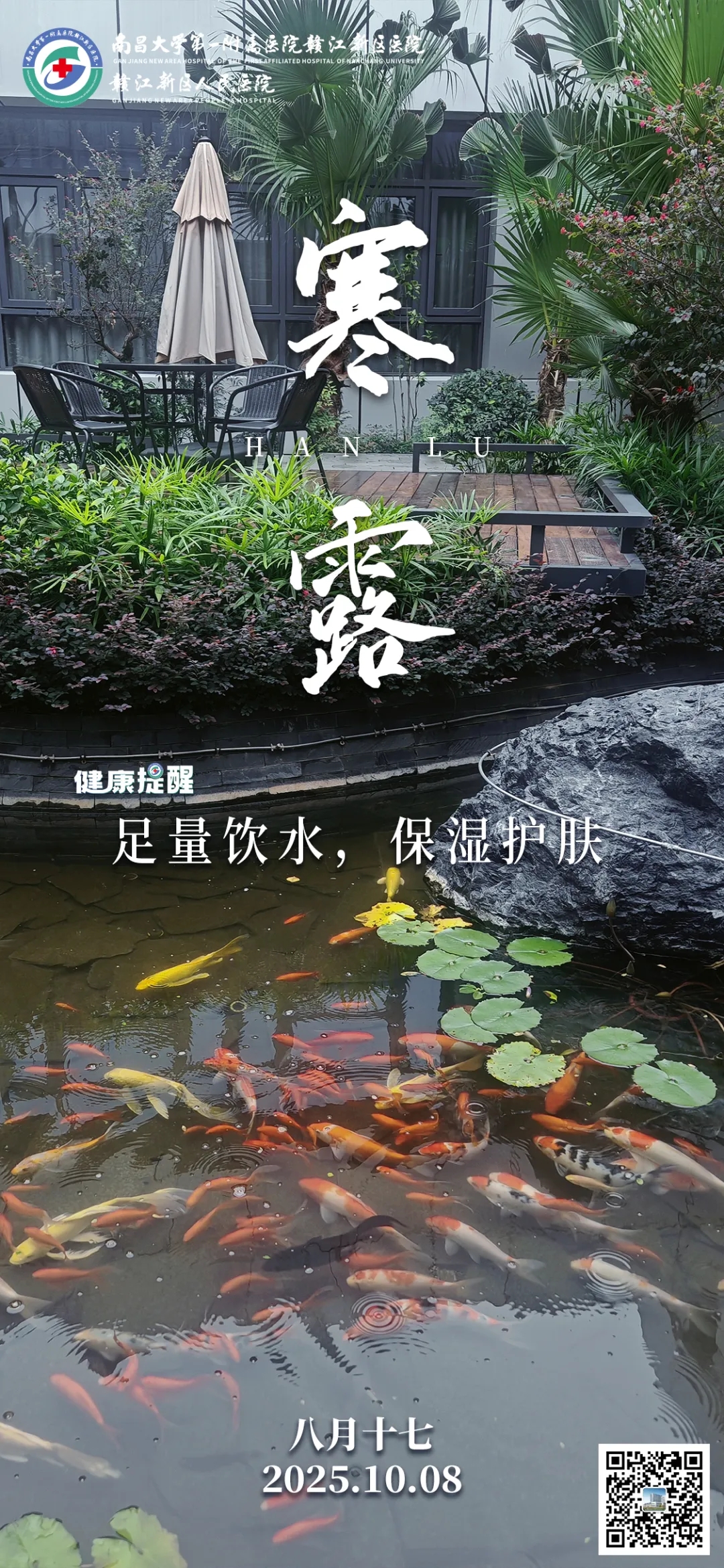 寒露后空气湿度骤降,需落实 “足量饮水,保湿护肤”。每日建议喝 1500-2000ml 温水,少量多次饮用,既能缓...