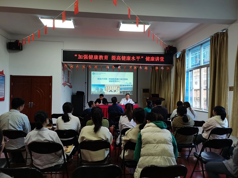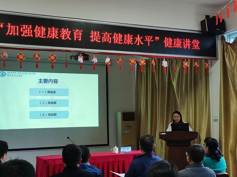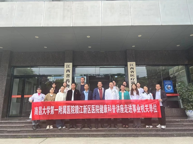 4月10日下午,南昌大学第一附属医院赣江新区医院(赣江新区人民医院)健康管理中心组织医务人员前往江西省医疗器械检测中心开展“三高”(高血压、高血脂、高血糖)健康科普讲座。