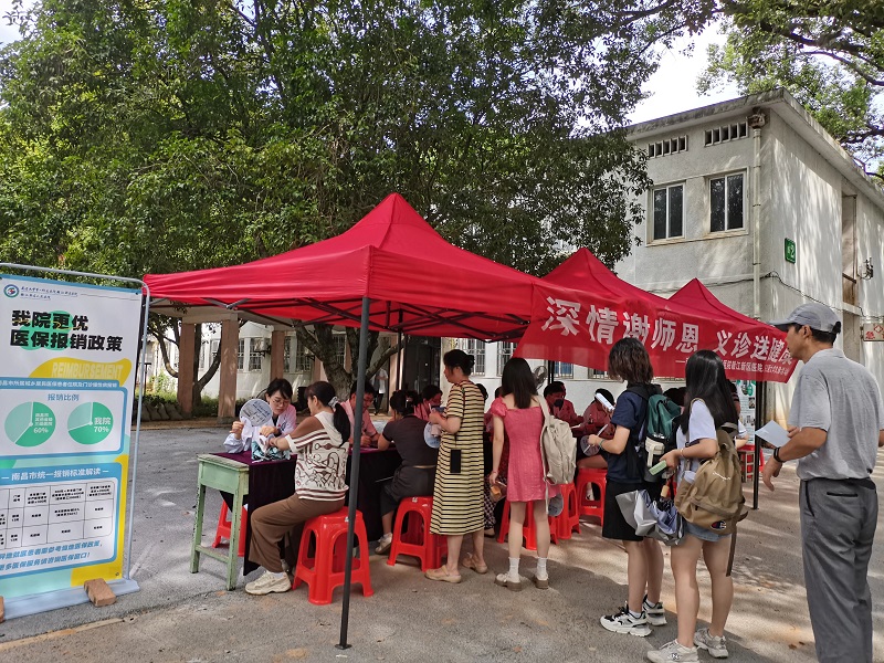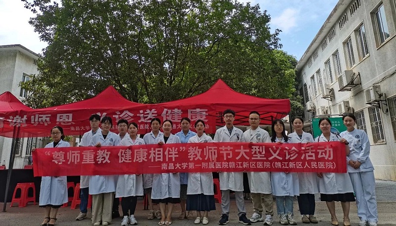 为弘扬尊师重教的优良传统,关爱教师的身体健康,增强教职工自我保健意识和能力,9月10日上午,南昌大学第一附属医院赣江新区医院(赣江新区人民医院)组织多学科专家和护理人员来到华东交通大学开展“尊师重教 健康相伴”健康义诊活动。