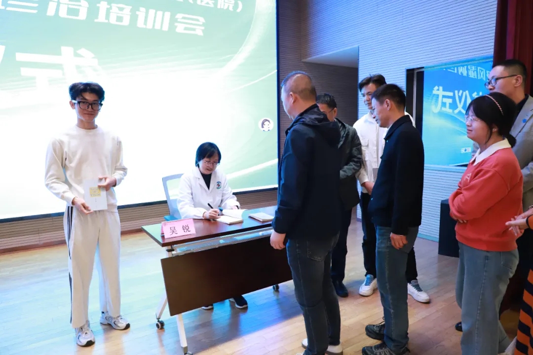 会议期间还设置了赠书环节,吴锐向参与单位及医护人员赠送了团队编写的强直性脊柱炎诊疗相关专业书籍,为项目的规范化推进提供了知识支撑。