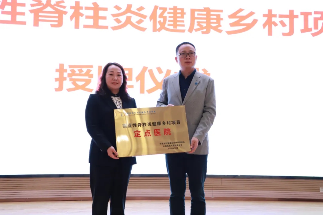 现场举行授牌仪式,宗飞与凌华共同为赣江新区医院成为该项目定点救治医院授牌,标志着该院正式开启农村强直性脊柱炎患者的专项救治与帮扶工作,将按照项目要求为符合条件的患者提供规范诊疗服务。