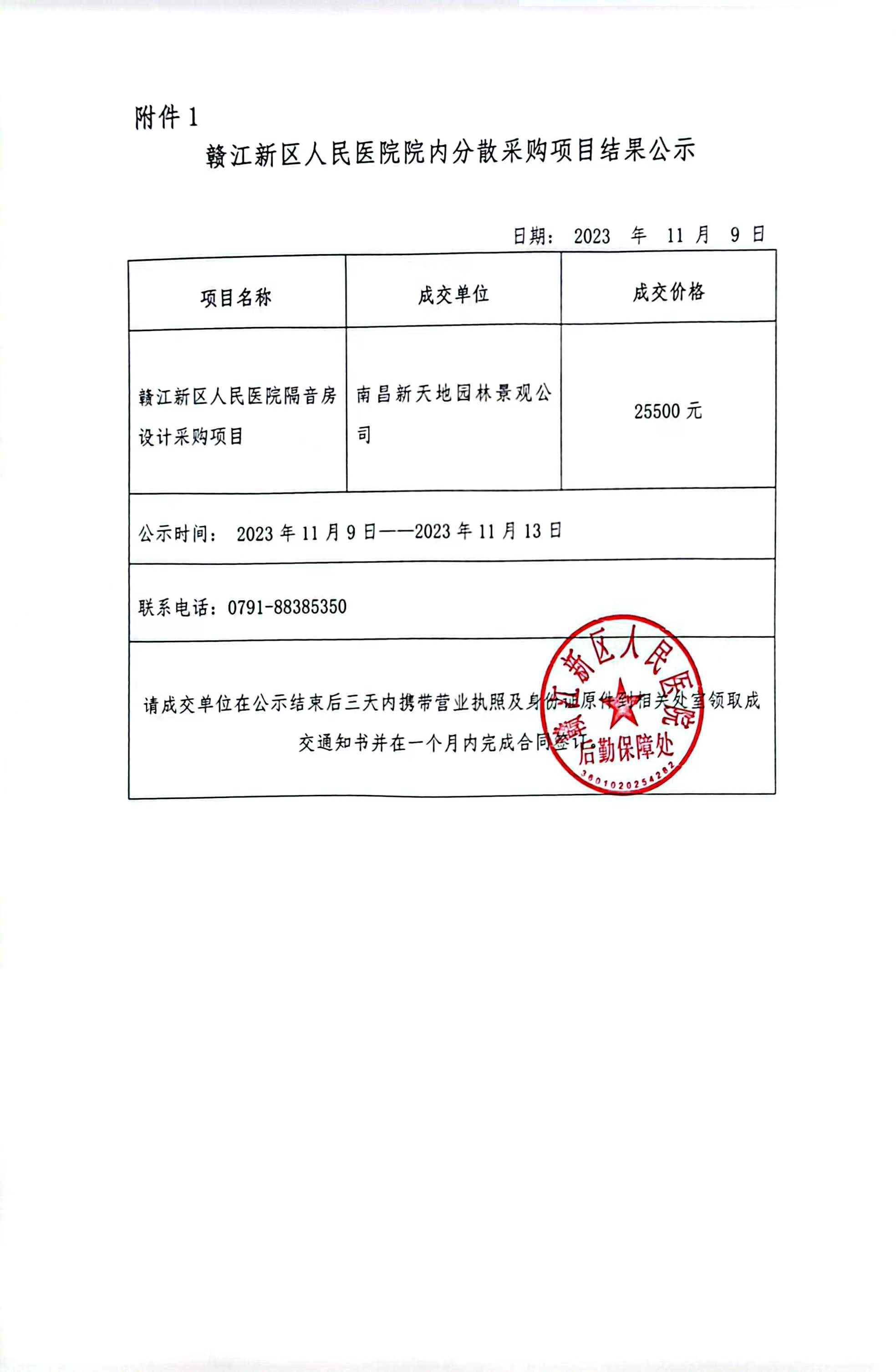 赣江新区人民医院“隔音房设计采购项目”招标结果公示